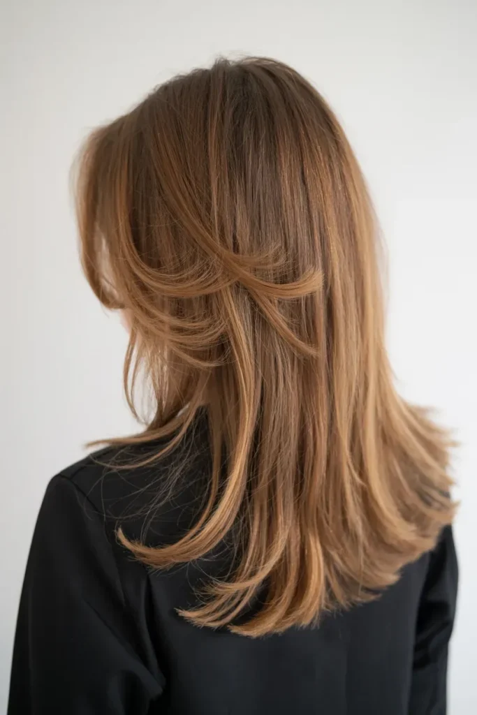 Feathered haircuts are trending again in fall 2026 because they create soft, airy, and youthful movement. From the back, the layers appear light and flowing, making hair look fuller and more lively.