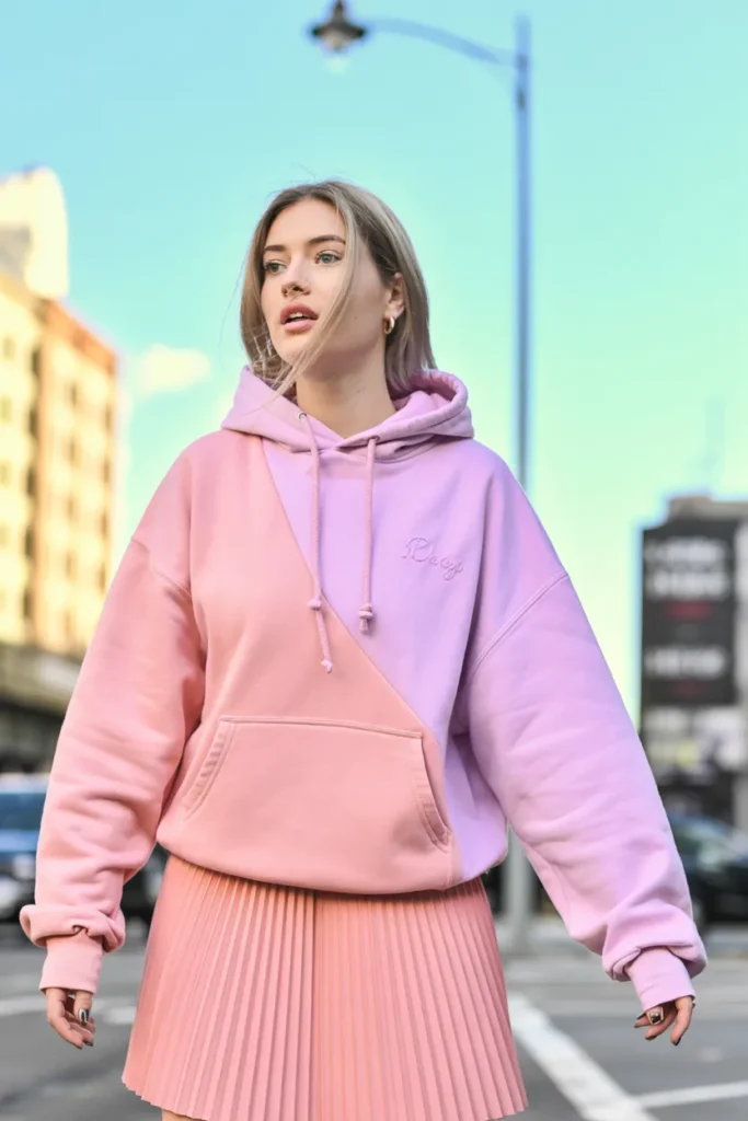 4. Oversized Hoodie with Pleated Skirt