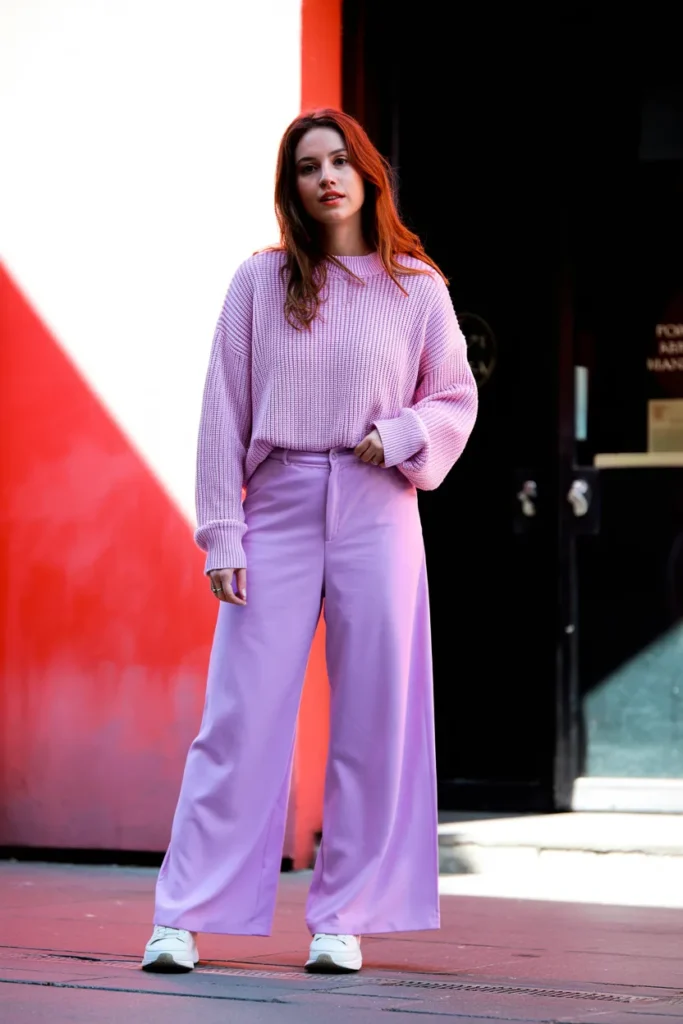 7. Pastel Sweater with Wide-Leg Pants