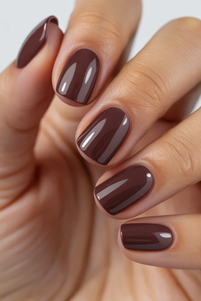 This color adds character while remaining elegant. Burnt fig mauve pairs beautifully with neutral outfits and autumn textures like wool and suede. It’s especially flattering on medium-length nails and offers a sophisticated alternative to traditional reds. The shade feels unique yet accessible, making it a standout choice for fall manicures.